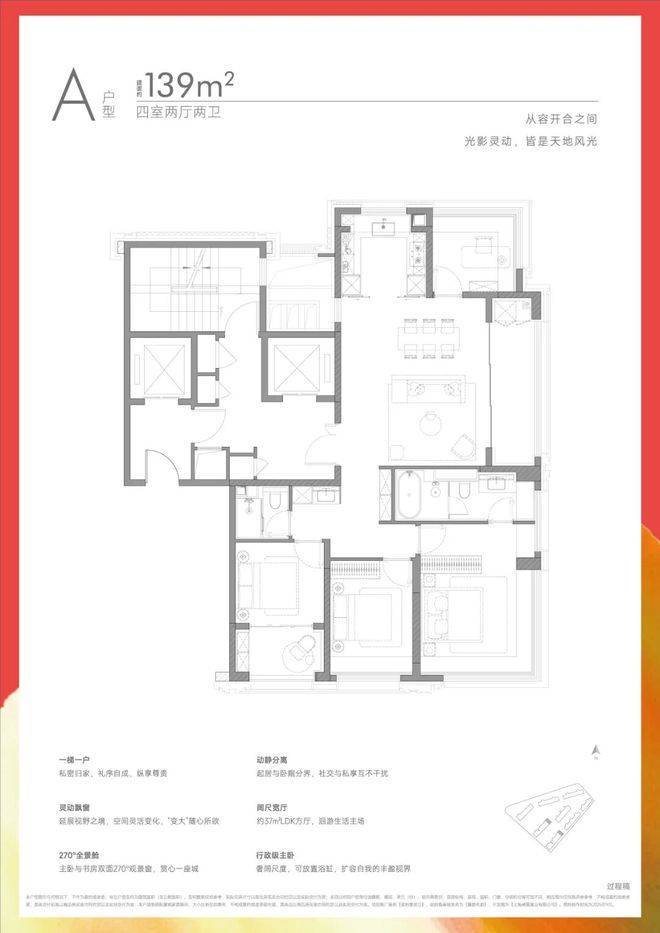 项目首推建面约117-139㎡3-4房,你想要的“类独立电梯厅”、“双阳台高实得率”、“大面宽”、“270°灵动飘窗”等包罗万象。
