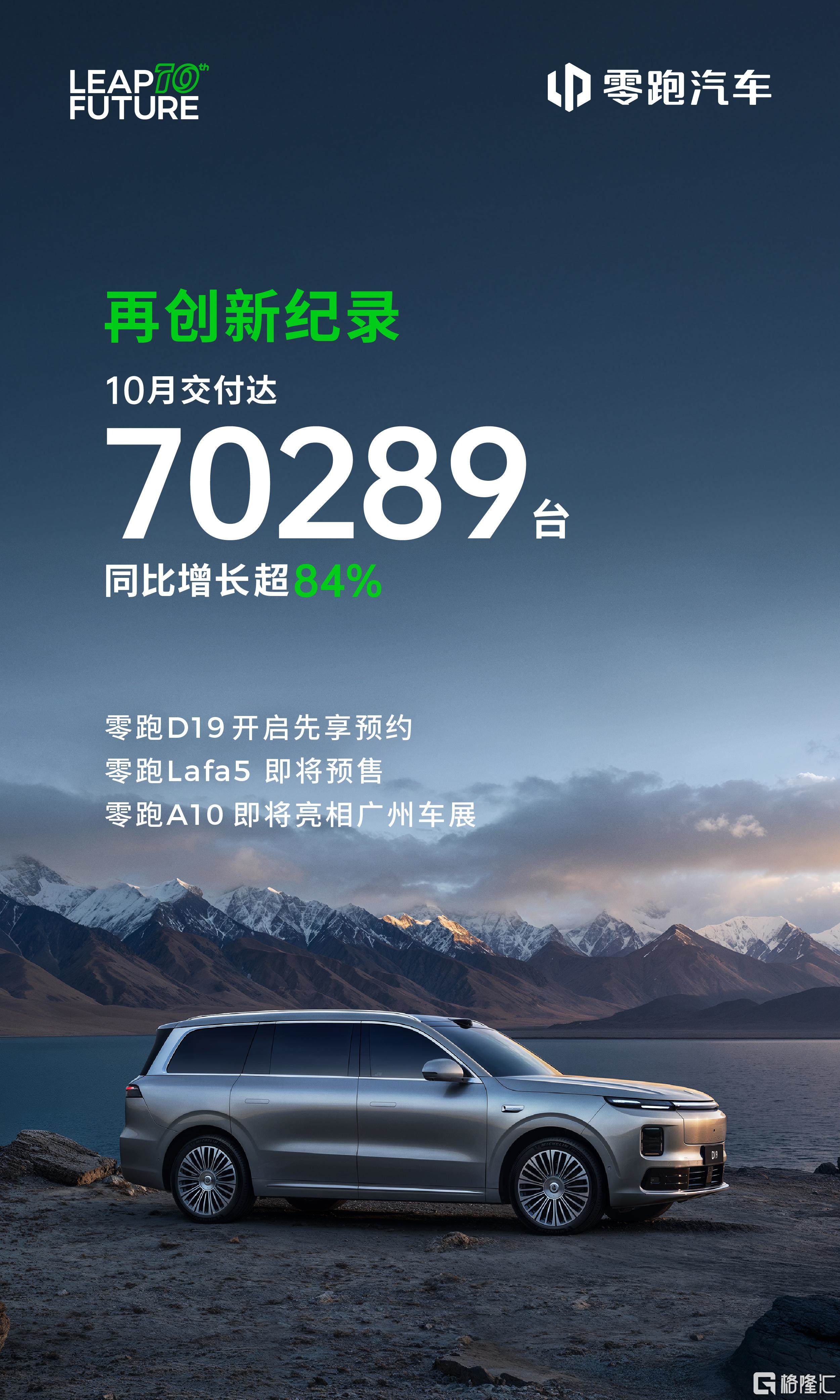 零跑轿车10月交给达70289台再次刷新造车新势力月销纪录